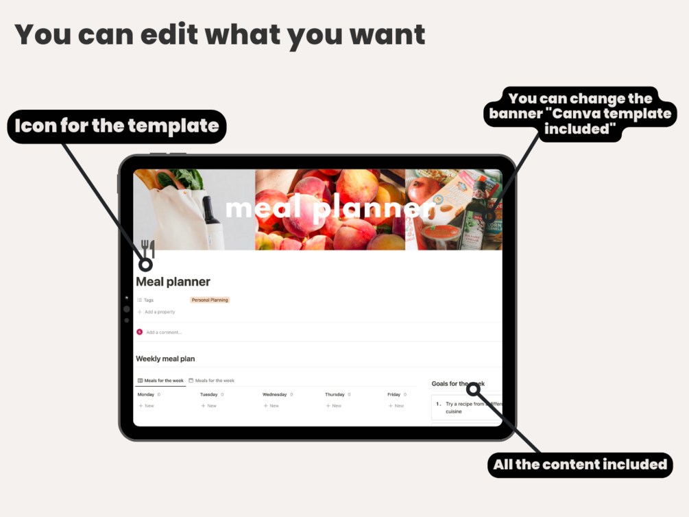 This Notion meal planner template is the perfect way to stay organized and on track with your meals. It includes everything you need to plan your meals for the week, including a grocery list, recipe book, and meal planning calendar. The template is also fully customizable, so you can change the colors, fonts, and layout to match your personal style.